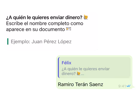 Completa algunos datos del envío como el monto y nombre de la persona que envías dinero.